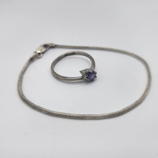 Sterling Silver Bracelet and Amethyst Ring Set
